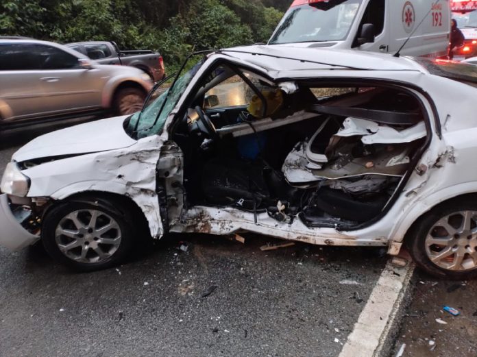 Enquanto isso, o segundo veículo sofreu danos mais graves e afetou três ocupantes. Uma das vítimas ficou presa nas ferragens, exigindo uma operação de resgate delicada. As equipes do Corpo de Bombeiros Militar de Santa Catarina (CBMSC), com as viaturas ABTR-195 e ABS-014, utilizaram a técnica da “terceira porta” para retirar a vítima pelo porta-malas, garantindo sua segurança.