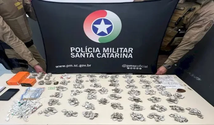 Os policiais encontraram uma mochila descartada durante a fuga, contendo entorpecentes. A apreensão incluiu 2,02 kg de maconha, 13 gramas de cocaína e 132 gramas de crack.