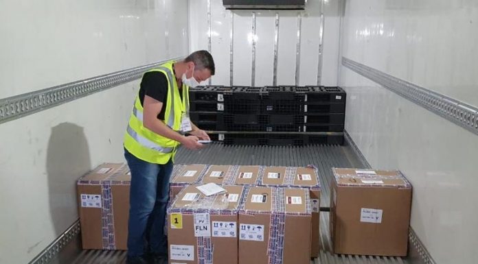 Um novo lote de vacinas da Pfizer, com 39.780 doses, chegou ao aeroporto de Florianópolis às 19h20 desta segunda-feira (10/5). Do aeroporto, as doses da vacina contra Covid foram encaminhadas para a Central Estadual de Rede de Frio para...