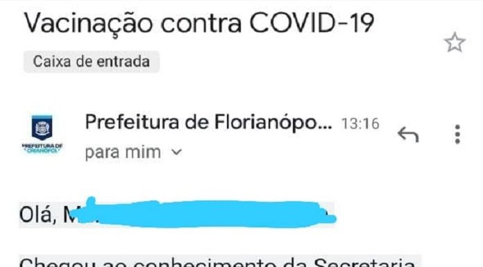 A Secretaria de Saúde de Florianópolis emitiu nota afirmando que é falsa a informação de envio de e-mail de cunho sexual pedindo quaisquer fotos sobre a vacinação contra Covid-19. No e-mail, que tem logo da prefeitura, é solicitado o...
