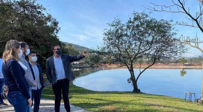 O prefeito de São José, Orvino Coelho de Ávila, o vice-prefeito, Michel Schlemper, o secretário da Casa Civil, Fernando Verdine, e o Secretário de Infraestrutura, Pedro Paulo, visitaram a lagoa de estabilização de esgoto de Potecas, junto com a...