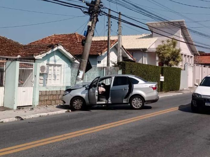 Um acidente no por volta de 13h45 desta quarta-feira (23/8) quase derrubou um poste no Centro Histórico de São José, na Rua Homero de Miranda Gomes ao lado da Polícia Científica. Um veículo Fiat Siena colidiu aparentemente sozinho contra o poste, com acionamento dos airbags e dando perda total no carro. O poste ficou inclinado e preso pelos fios e precisará ser substituído. Não há informações sobre feridos.