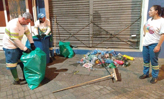 As ruas onde ocorreram as festas no Centro foram varridas e lavadas. Nesse ano foram instalados 100 latões identificados, metade para rejeitos e metade para recicláveis, além dos contentores de 2,5 mil litros para embalagens de vidro.