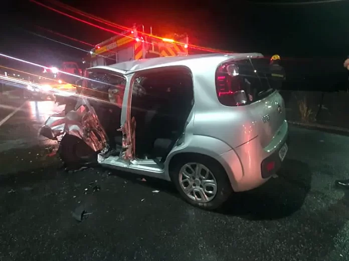 A condutora do veículo ficou presa nas ferragens e os outros dois passageiros – uma criança de 6 anos e outra mulher – foram encaminhadas por terceiros para a UPA de Forquilhinhas.