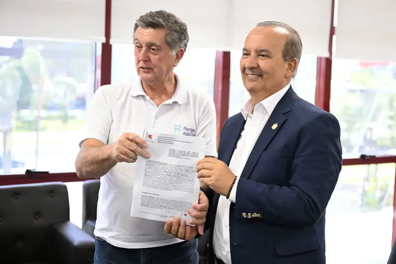 Topázio Neto e Jorginho Mello assinaram parceria para alargamento da Praia de Jurerê - Foto: Eduardo Valente/Secom SC