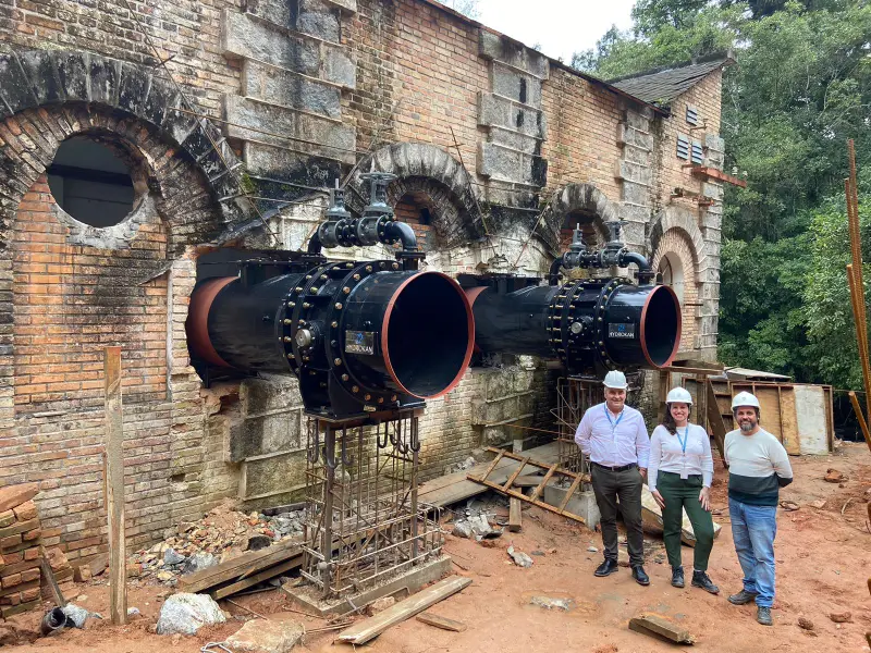 A câmara de carga está concluída e os novos condutos forçados já estão sendo posicionados e montados. Além disso, a casa de força está sendo preparada para receber os novos equipamentos.