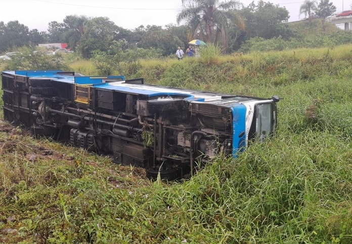 Informações preliminares dão conta que haviam mais de 20 passageiros no ônibus. Segundo a PMRv, não há nenhum ferido grave, apenas três levemente feridos. O atendimento pré-hospitalar está sendo realizado pelo Corpo de Bombeiros e Samu.