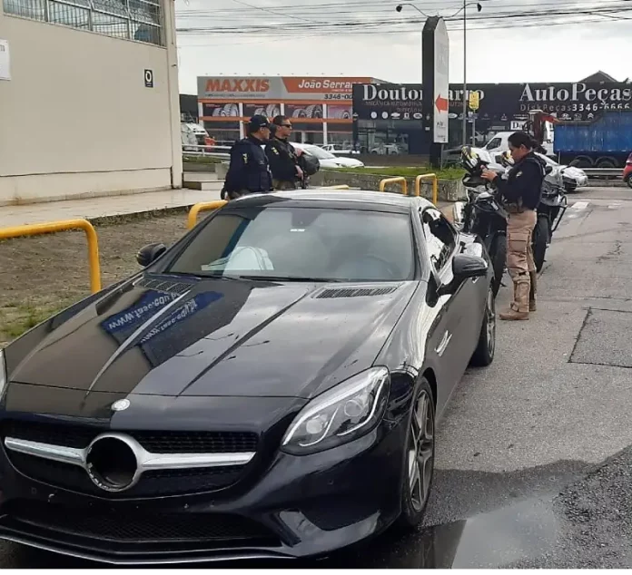 Na manhã de quarta-feira (20), policiais rodoviários federais perseguiram um carro Mercedes-Benz sem placas que estava dirigindo de forma irregular na BR-101, em São José. O motorista ignorou uma ordem de parada e fugiu por quase dois quilômetros antes de ser interceptado.