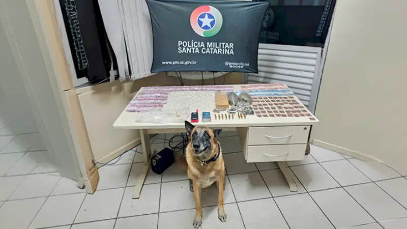 A Polícia Militar de Santa Catarina (PMSC) apreendeu drogas, munições e materiais usados no tráfico na noite de segunda-feira (27/04), em São José. A ação envolveu o 7º Batalhão de Polícia Militar e a equipe do Canil.