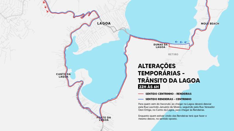 A Prefeitura de Florianópolis vai interditar à noite os acessos à Avenida das Rendeiras e ao Centrinho da Lagoa da Conceição nesta semana. A medida vale nos dias 5, 6 e 7 de agosto (terça, quarta e quinta-feira).