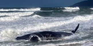 Morre baleia encalhada no litoral catarinense